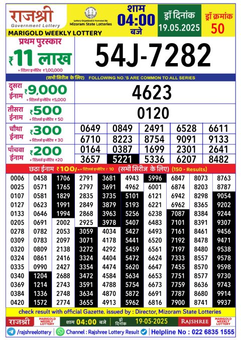 • Rajshree 50 Weekly lottery result