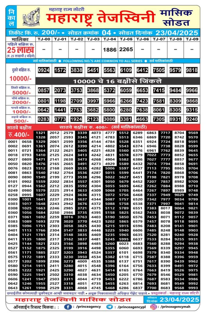 Maharashtra Tejaswini monthly lottery result 23 april 25 Leave a Comment on Maharashtra Tejaswini monthly lottery result 23 april 25